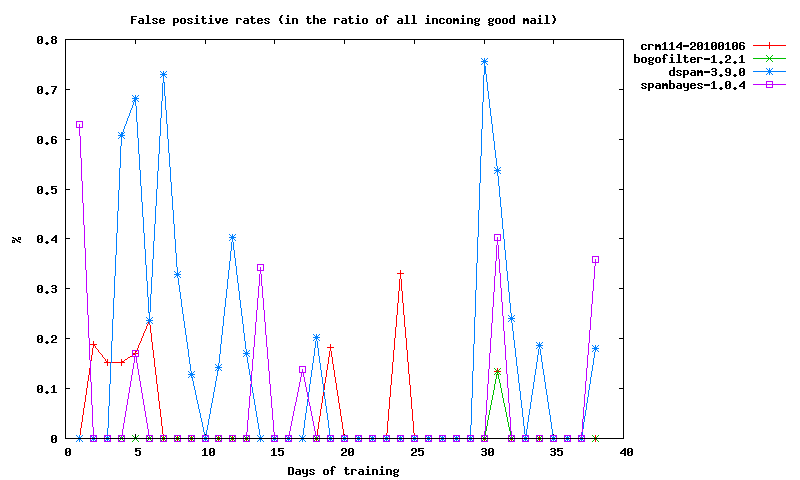 A bogofilter viszont brillírozott a csapat tagjaihoz képest, egyetlen egy hibát vétett a 38 nap alatt.