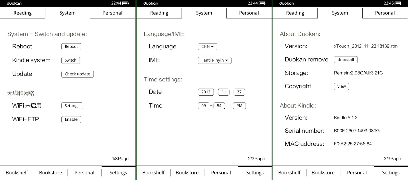 A gyári kindle OS-re gondolsz? Az is megmarad, és ez is választható lesz mellette. A kindle paperwhite-re viszont csak 5.2.0 fw-re rakható, 5.3.0-ra már nem. Eddig. Hol veszel ilyen készüléket? A szótárhasználatra ugyanaz vonatkozik mint kindle 3-4-en DuoKan esetében, ez számomra kényelmes. Nem tudom milyen alapról beszélsz, talán a kindle gyári OS-éről? :)