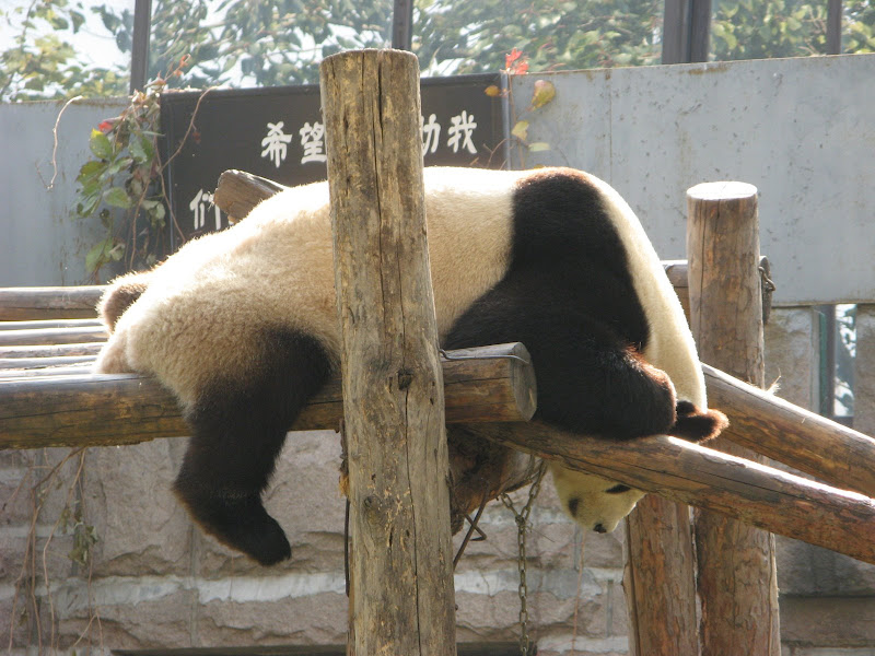 Szóval ezek a pandák kedvesen, aranyosan eszegették a eukaliptusz ágakat vagy aludtak – bár ahogy tudtam a pandák nagyon másból sem áll. Ezek után megnéztük a pandák megmentésével foglalkozó helyi intézet áldozatos munkáját bemutató kiállítást. Majd mindenféle pandás ajándékok megvásárlására is mód nyílt, kissé vastagabb áron.
